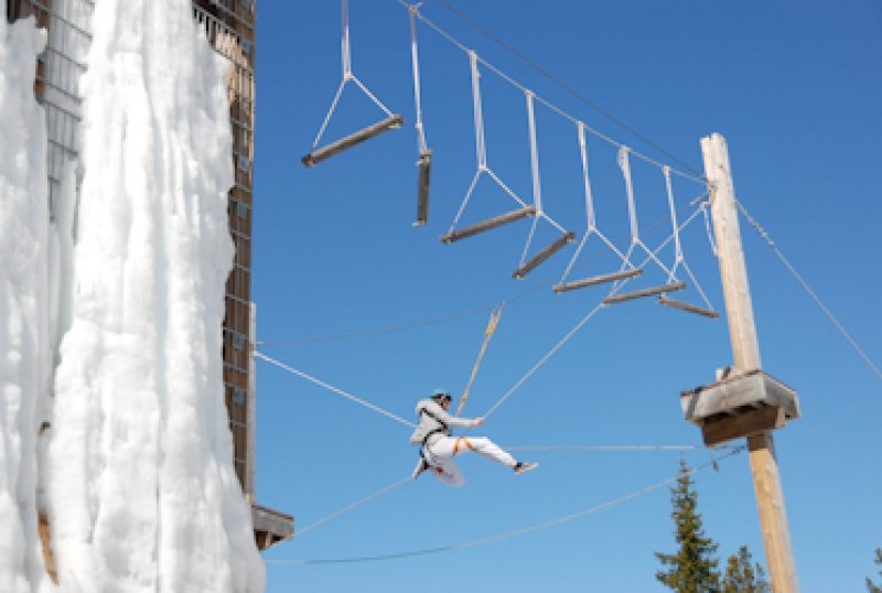 Tornin yläosissa sijaitsevat yläköysiradat, jotka tarjoavat haasteita ja onnistumisen kokemuksia kiertäjälleen!