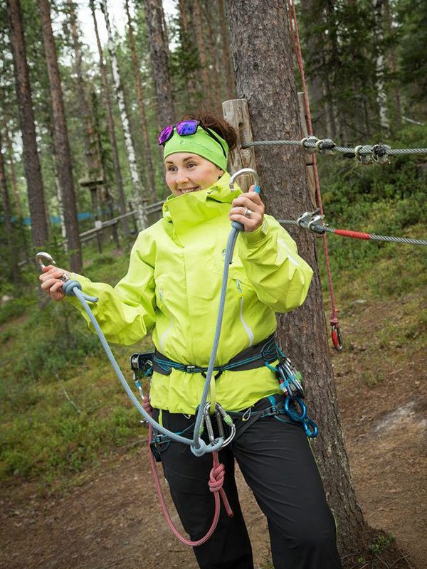 Levin seikkailupuistossa kiipeillään lappilaisessa mäntymetsässä. Seikkailupuisto sijaitsee Levin Activity Parkissa, Levi Black -kisarinteen vieressä.